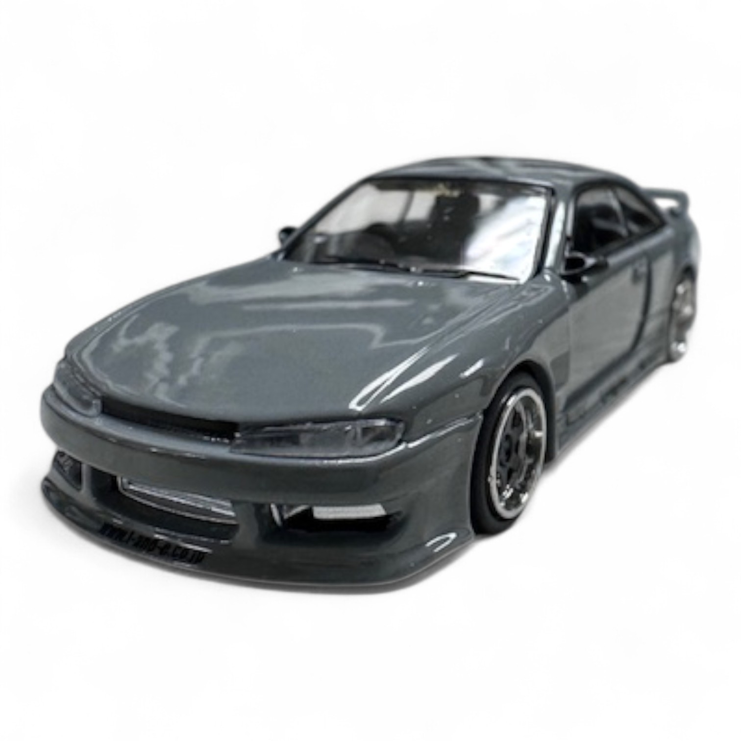 The Tarmac Works x Vertex Nissan S14 Silvia (Grey) is a 1:64 scale diecast model that showcases the clean, aggressive lines of the S14 paired with Vertex's signature aero design.