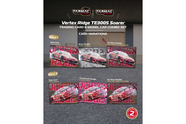 Tarmac Works x Vertex Ridge TE3005 JZZ30 Soarer in Red with D1GP livery. Includes trading cards. Highly detailed 1:64 collectible — a must-have for Vertex and drift fans.