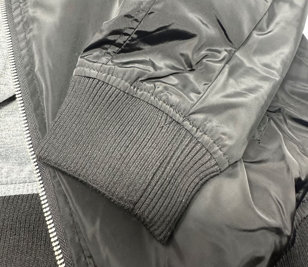 - Ribbing at cuff & bottom hem